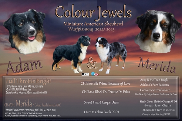 Merida und Adam haben am 1.September 2025 5 wunderbare Wesen auf die Welt gebracht. Einer hübscher als der andere. Es sind 3 Rüden und 2 Mädels geworden. Für mehr Infos bitte Bild anklicken. Mit diesen Wurf verabschiedet sich Merida aus der Zucht und geht in ihren wohlverdienten Ruhestand.